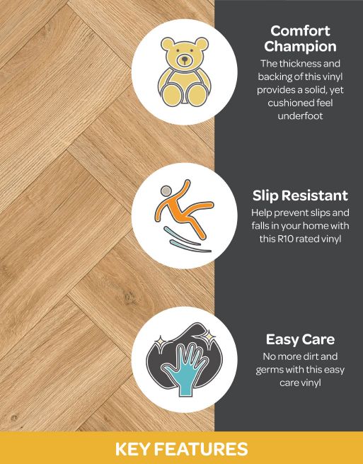 This 5mm thick vinyl provides a solid underfoot feel, giving you support as you walk whilst also offering comfort for each step.